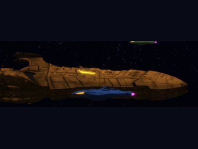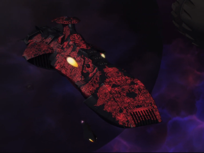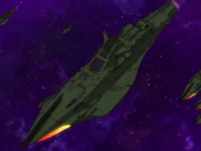 The Zoellugut-class First Class Astro Combat Ship is a super dreadnought class and the largest and most powerful regular warship in the fleet of the Great Garmillas Empire. The Zoellugut-class is heavily armed with multiple positron beam weapons and multiple torpedo tubes. The super dreadnoughts are well armored, especially in the bow. One superdreadnought was able to harmlessly deflect a shock cannon volley aimed directly at its forward section, a blast that would have seriously crippled or destroyed other ship classes in the Garmillas fleet; the port side of the dreadnought took significant but not fatal damage from the same weapon, but only when it was fired at point blank range. However, these ships are vulnerable to the Gatlantis Empire's Flame Strike Gun.