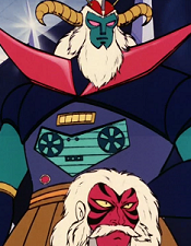 Millenia later, the Empire's ancient but advanced technology was used by Dr. Hell in his plot for world domination. After Dr. Hell was killed in battle; his former servant and current incarnation of the Mycenae priests Tristan and Isolde, Baron Ashura offered him/herself up in sacrifice to make the now cyborg army of the empire rise from the depths of the Earth to retake the surface.