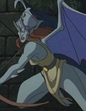 At about this time, the legendary Irish hero Cu Chullain was accompanied on many of his adventures, including his defeat of the Banshee, by a gargoyle beast which came to be known as the "Hound of Ulster" (although later on, the name came to be applied to Cu Chullain himself and the gargoyle beast came to be forgotten). About five hundred years later, King Arthur Pendragon of Britain also made the acquaintance of gargoyles, although the medieval romancers who wrote about him and his knights likewise ignored their part in the history of Camelot. [6] Few humans were as willing to accept gargoyles as these two legendary heroes had been. And so, by the dawn of the High Middle Ages in the 11th Century, gargoyles had become so rare that humans believed them to be extinct (and few mourned that). Indeed, in Europe the 11th Century saw the end of one of the last alliances between humans and gargoyles, that formed between King Macbeth of Scotland (1040-1057) and Demona, which ended in 1057 when Demona betrayed Macbeth to the forces of Malcolm Canmore, bringing about the destruction of Demona's Clan as well as Macbeth's downfall. The Age of Gargoyles was at an end.