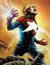 The Squadron Supreme were a team of super heroes from Earth-Squadron (also called Earth-S), a parallel reality of Earth-616. The team initially formed to stop a mad alien robot. They clashed with the Avengers on several occasions. During one of these battles, they became aware that US President Rockefeller of their reality had come under the control of the Serpent Crown. They publicly denounced the government, causing Rockefeller to be ousted from office. Nighthawk was then elected new President of the United States. After the Overmind and Null the Living Darkness left their world in chaos, Hyperion and Power Princess decided that the best option was to take control of the world.