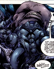 Tritonis: A land of rough living mermen and women that view their way of life (living with the creatures of the deep) clean and natural, feeling it makes them stronger. This was the home of the Merman King Iqula, whom challenged and nearly defeated Aquaman. After being defeated in a one-on-one battle with Aquaman he swore to help protect Poseidonis as best he can.