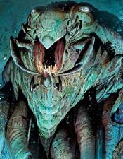 In a long distant past, an ancient race of Homo Mermani decide due to the dangers posed by the Earth’s axis changing, they must leave their ancestral home in the Polar regions. The population is split into two groups, one of which travel to the Sea of Tranquility (The Atlantic) and the other to the Sea of Turbulence (The Pacific). Soon after the ancient Homo Mermani left, natural disasters cause massive destruction and change the planet’s landscape forever, destroying their glorious cities. The Homo Mermani who moved beneath The Pacific built an Empire there that came to be known as Lemuria. However for reasons unknown, the waters of the Pacific changed the very flesh of the Lemurians to more serpentine in hue.