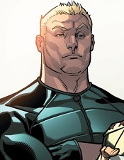 With the success of Nicholas Fury, Project Rebirth finally chose a young and weak boy by the name of Steven Rogers, who became Captain America.[3] By 1945, Captain America was part of an operation assaulting a Nazi missile complex in Iceland, which held a hydrogen-nuclear missile and was was targeted at the American mainland. Captain America sabotaged the missile while it was taking off, and was sent into a 60-year coma in suspended animation after the destruction of the missile plunged him into the arctic sea.<br> | |||